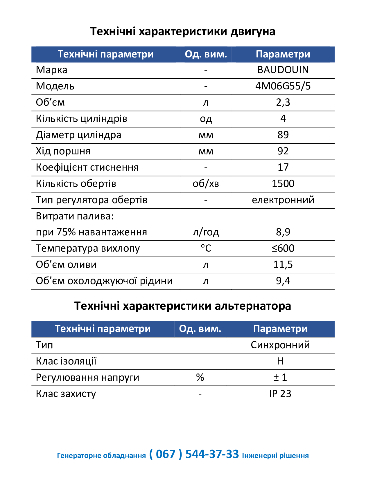 Потужність двигуна : StandBy 51kWm / Prime 46kWm