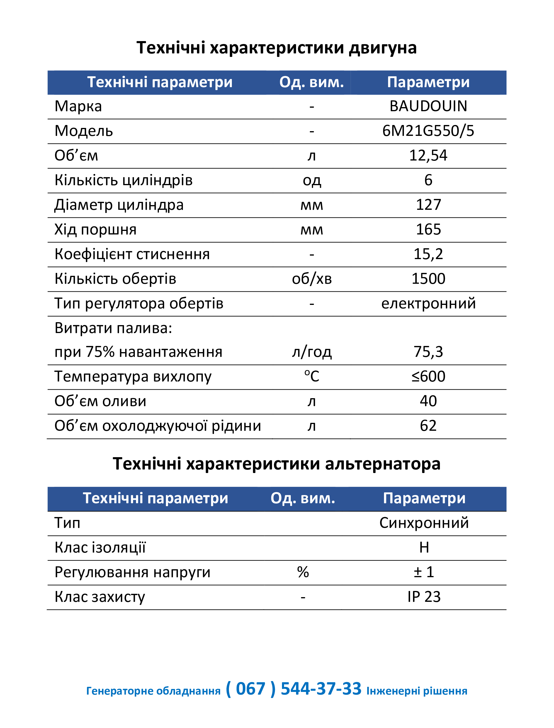 Максимальна потужність : 550кВА / 440кВт