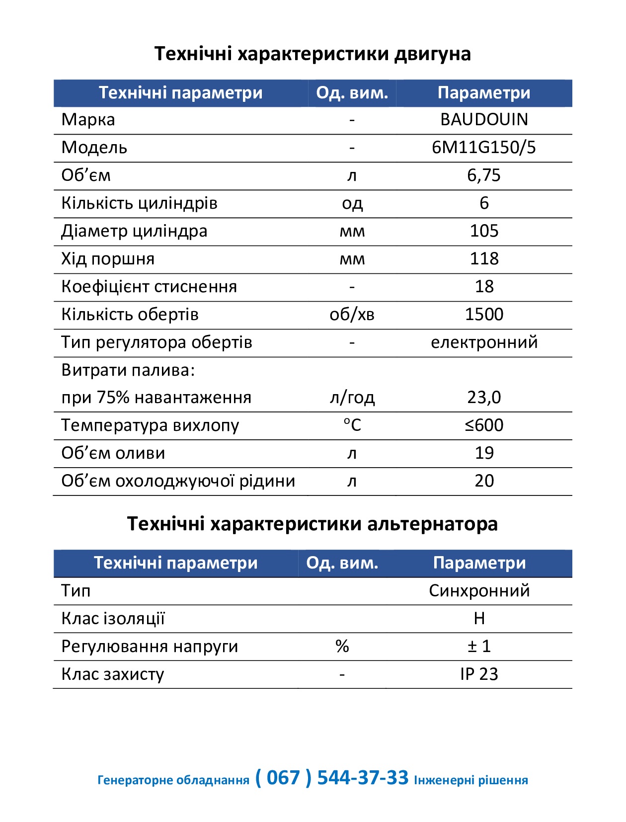 Потужність двигуна : StandBy 140kWm / Prime 128kWm