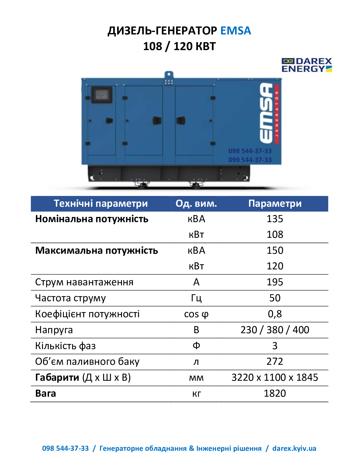 Потужність двигуна : StandBy 132kWm / Prime 120kWm