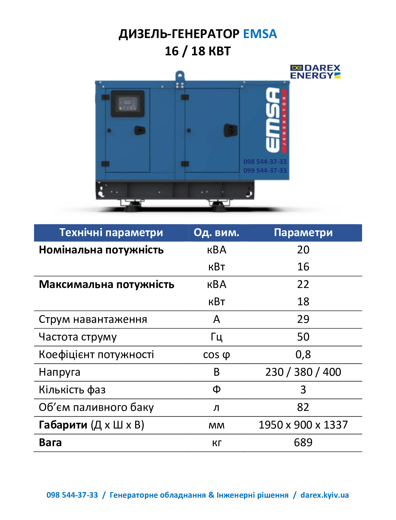 Потужність двигуна : StandBy 19kWm / Prime 17kWm